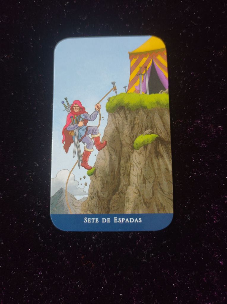 Esta carta, 7 de ♠️ Espadas, seguramente sugere cautela como a Carta do Baralho Cigano sugeriu e empenho como diante de possível inação no Tarô das Cartas de hoje de manhã.
